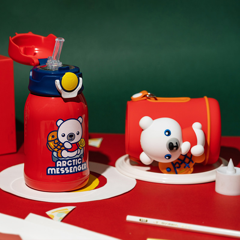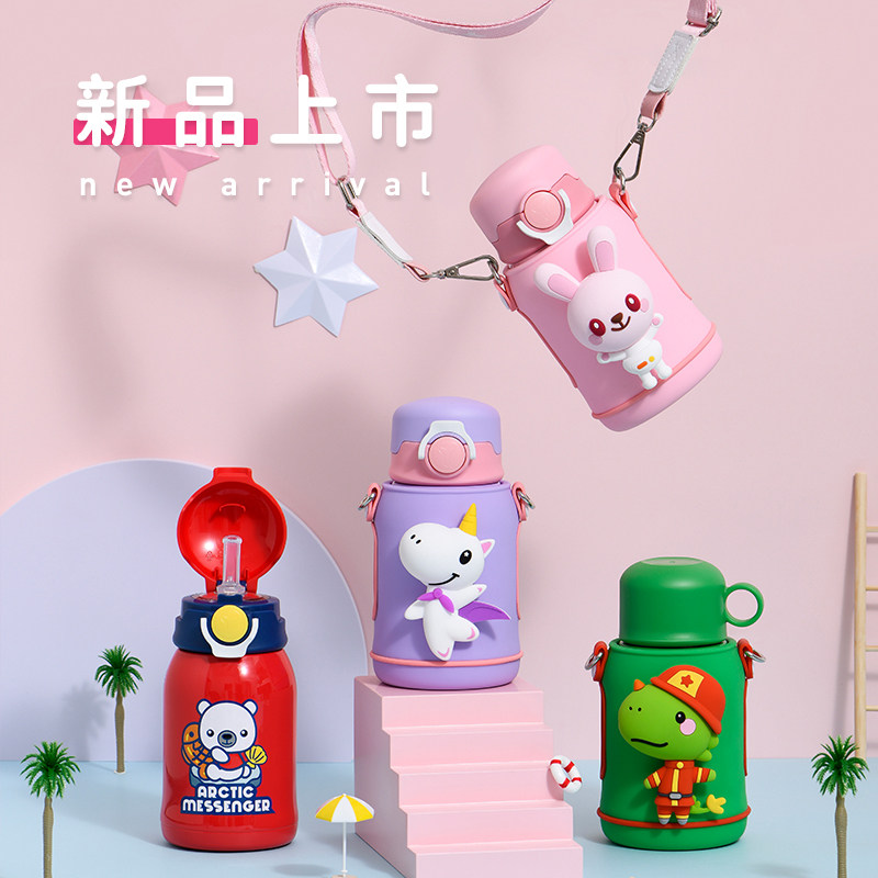 Children's thermos cup with straw dual-use primary school boy baby portable water cup kettle Kindergarten cartoon straw cup