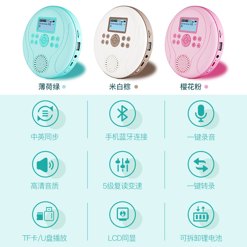 Radiant P18 Portable CD Player Repeater Charging Bluetooth MP3 Walkman Elementary School Students Junior High School Students Learning English Artifacts Home U Disk Insert Card Disc Learning Machine