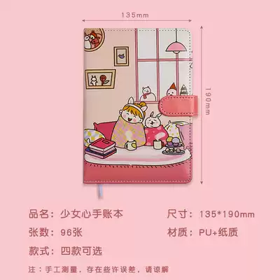 Korean Forest department hand account book Simple ins wind hand account book Cute girl heart sticker thickened grid checkered little fairy portable notebook Exquisite creative color page student diary illustration
