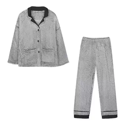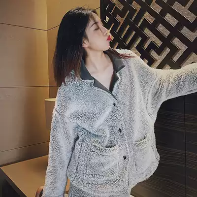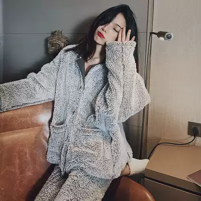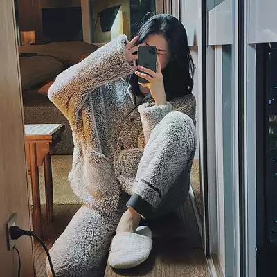Plush pajamas women's autumn and winter coral velvet suit warm plus velvet padded flannel home clothing two-piece set can go out