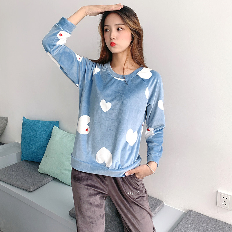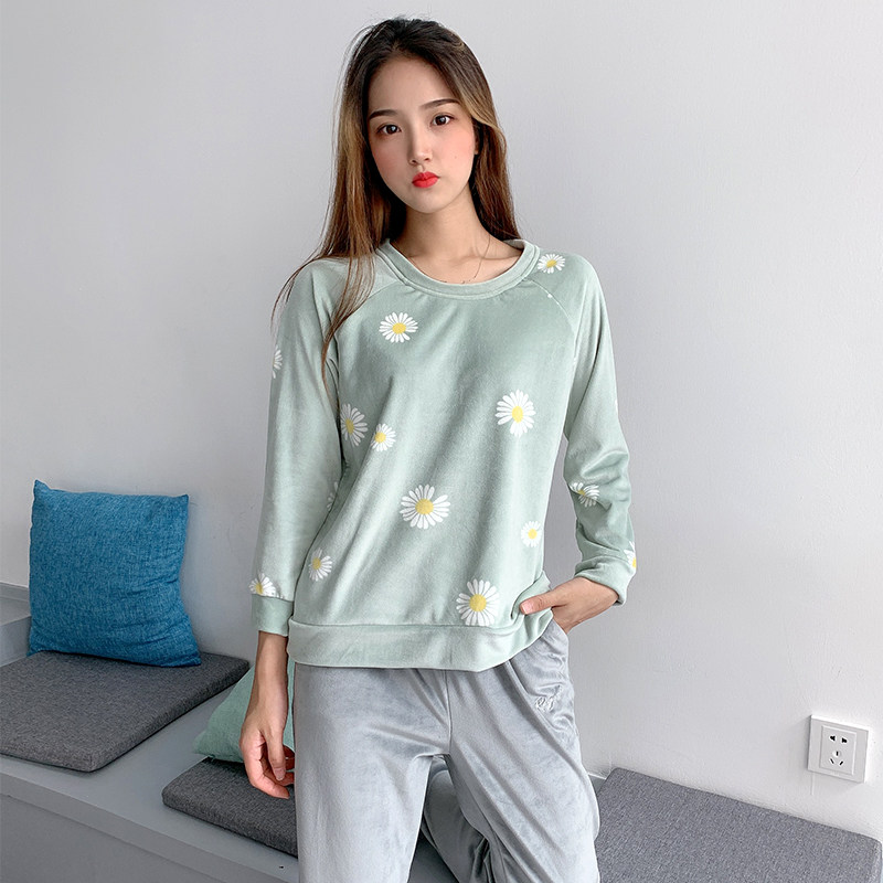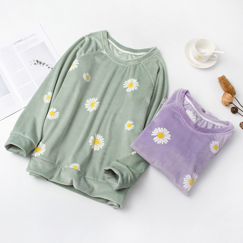 Soft and warm velvet feeling island velvet pajamas women's autumn and winter long sleeve plus velvet coral velvet flannel household clothing single coat