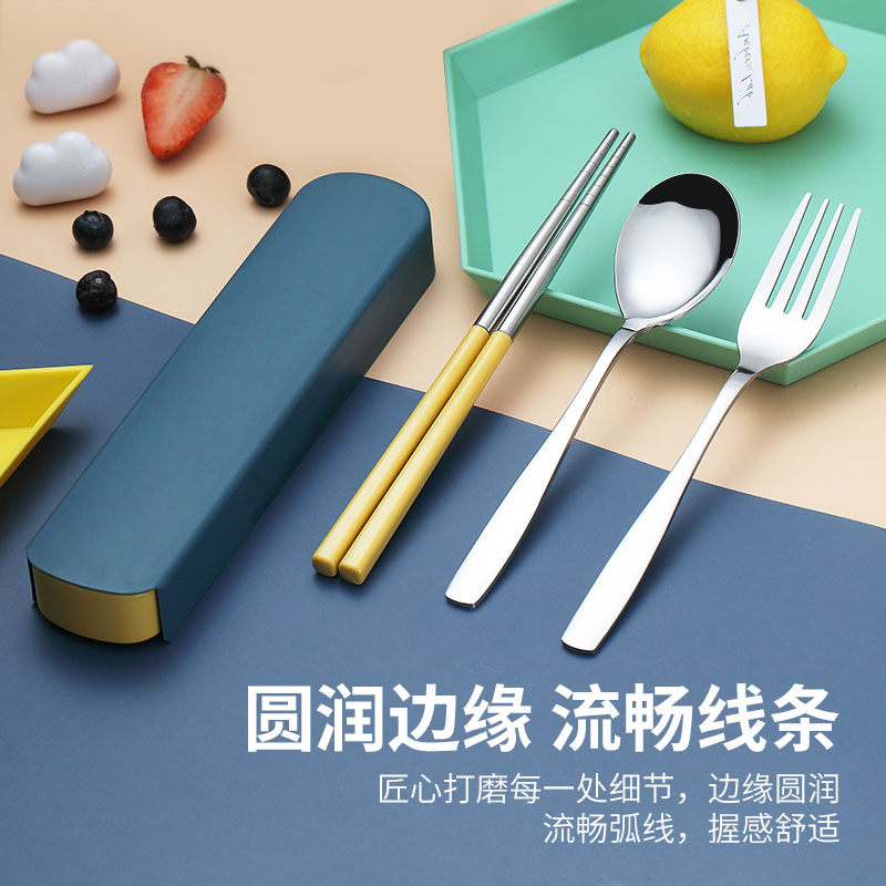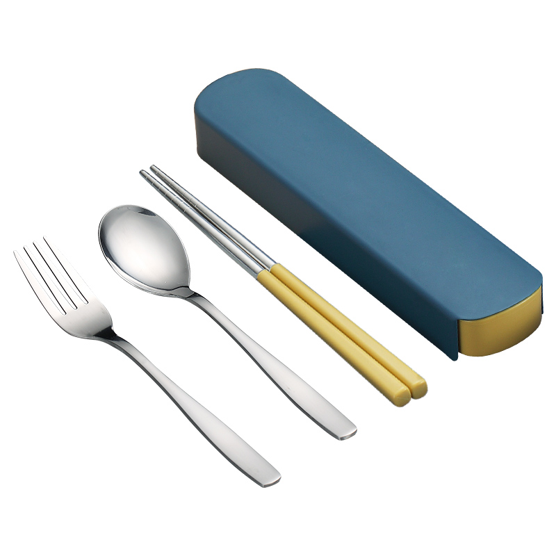 (Buy one sent one) New elegant blue cutlery Two sets (co-two sets) New upgrade thickened tableware Two sets (elegant blue) New upgrade thickened tableware Two sets (lemon yellow) Quality stainless steel