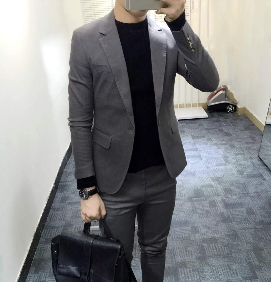 Fashion brand Autumn new fashion European and American British style suit suit with trousers Men's slim two-piece suit