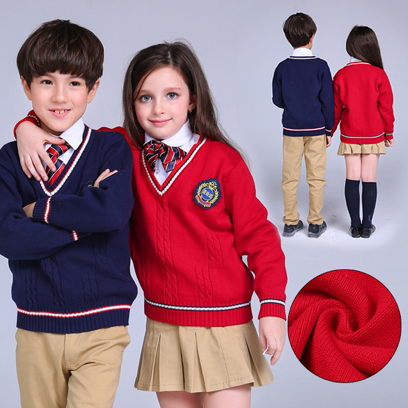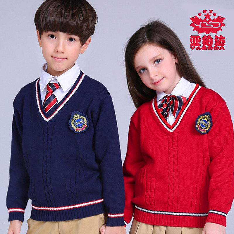 Children's knitted sweater pullovers are worn outside the Western style middle and big children's student performance clothes boys and girls autumn and winter cotton sweaters