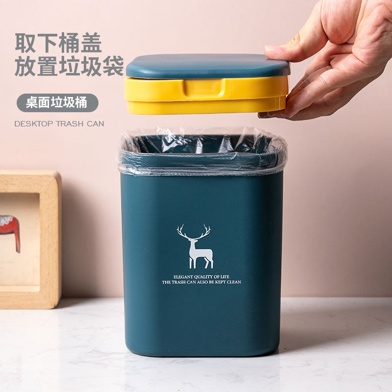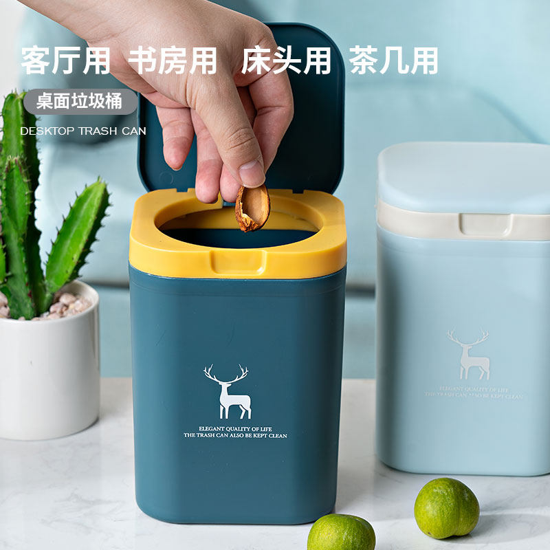 Desktop trash can Home living room plastic small mini table creative paper basket table top bedroom storage with lid