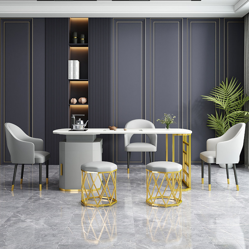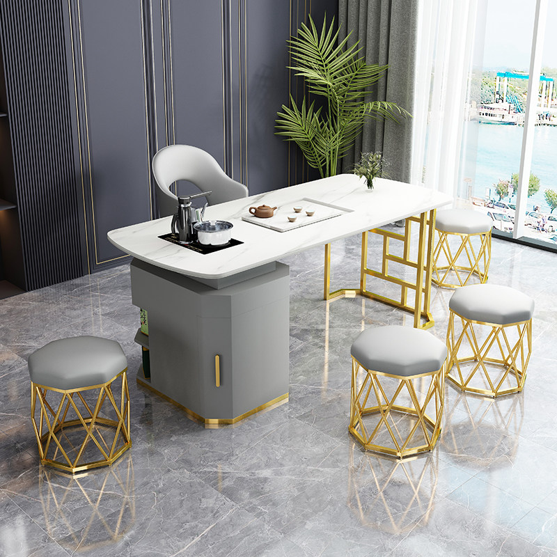 Balcony modern desks and chairs, light luxury, light rock board office home designer kung fu coffee table simple