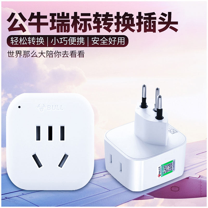 Bull Swiss standard conversion plug power converter socket travel abroad Swiss standard to national standard Switzerland Rwanda