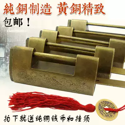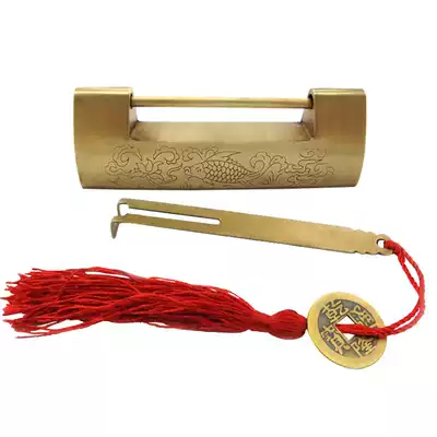 Storage cabinet Chinese long handle lock buckle lock horizontal bolt lock imitation copper lock ancient old cabinet door copper lock head small key lock