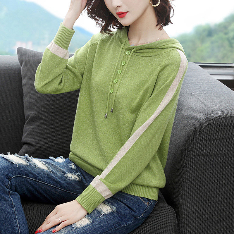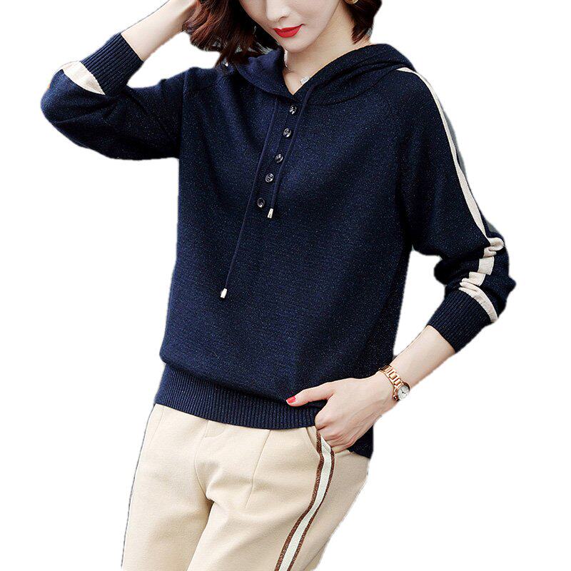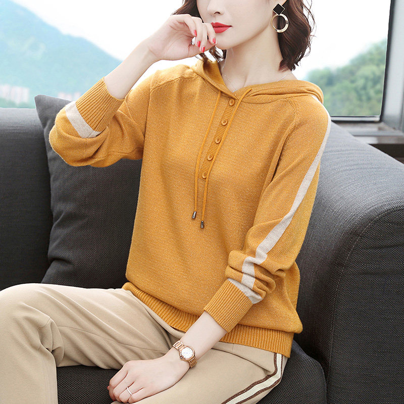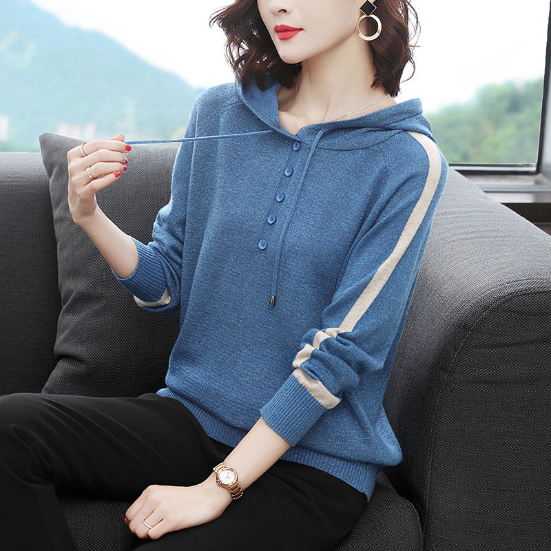 Ditu Dun 2021 new knitted sweater women's large size top new autumn dress hooded bright silk sweater bottoming shirt - Taobao