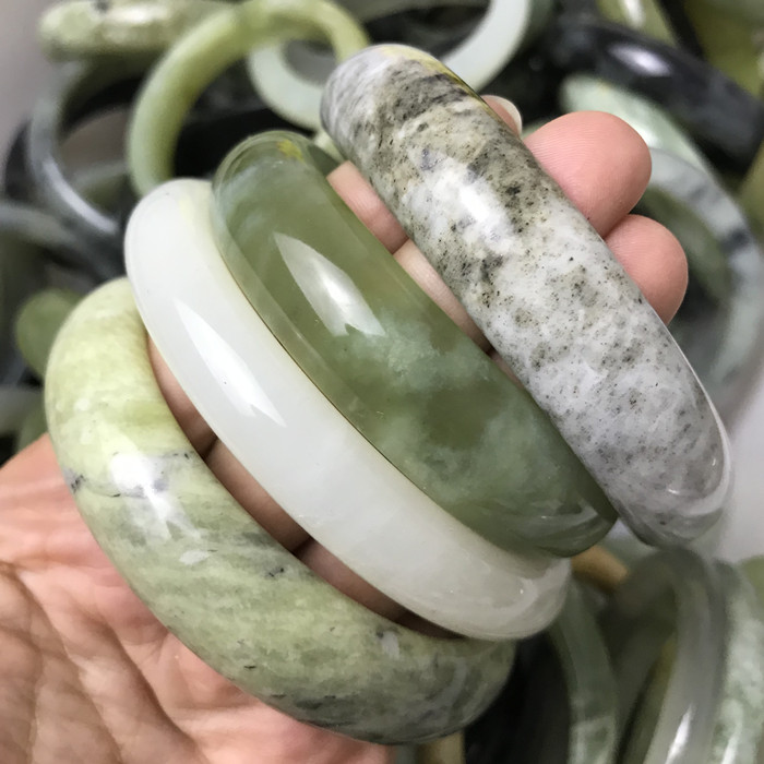Live natural Xiuyu bracelet leakage caliber full old jade river mill jade ice material 180 Xiuyu flower jade has defects