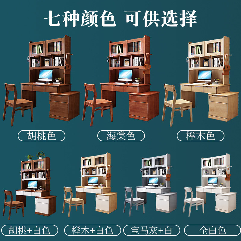 Chinese style solid wood desk bookcase bookshelf integrated home desktop computer desk student writing desk study furniture set