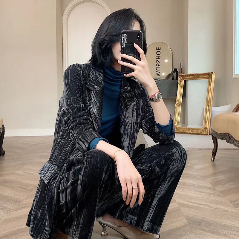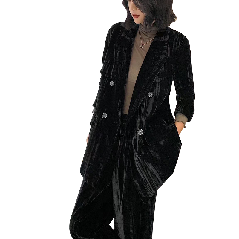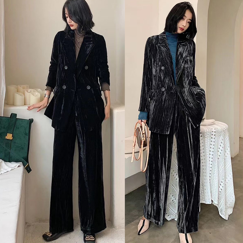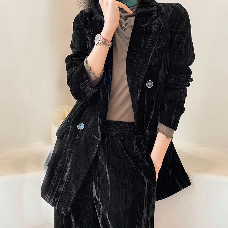 Velvet suit suit women's high-end spring and autumn black casual fashion temperament high-end fried street royal sister suit jacket