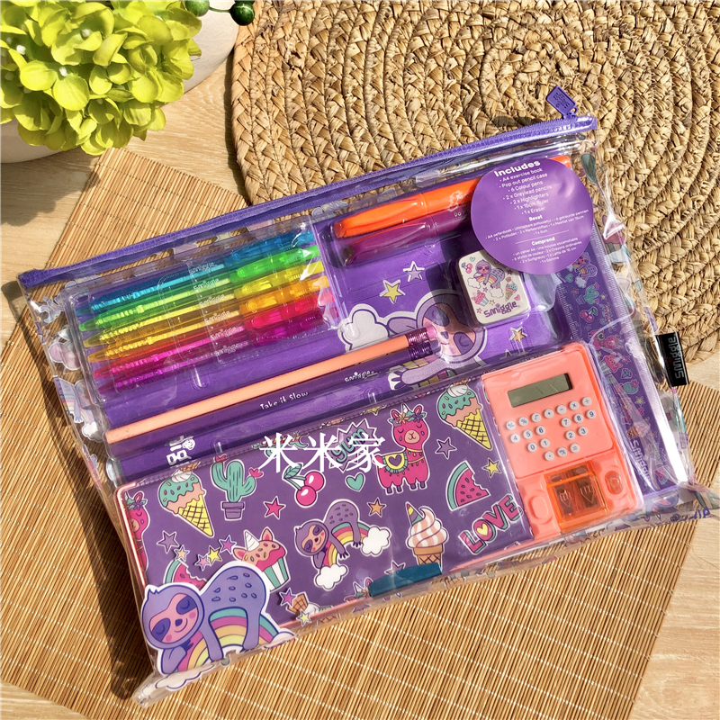 smiggle child learning pencil case suit elementary students computer automatic lead pencil case ball-point pen A4 ben