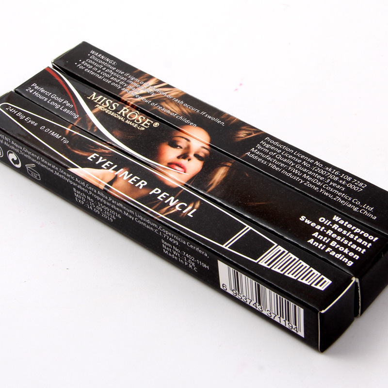 MISS ROSE eyeline pen and high - grade bright black pen stick lasting fluid waterproof fine soft head and hard head strong black and sweat