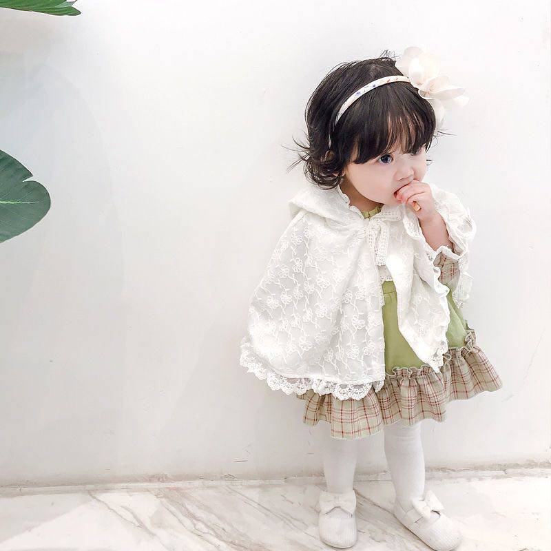 Korean spring and autumn baby cloak baby girl out princess lace hooded cape children's foreign small coat tide