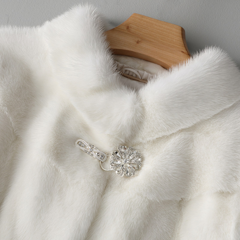 Anti-season special price young fashion mink coat lady whole mink short leather grass upright collar small ferret white coat