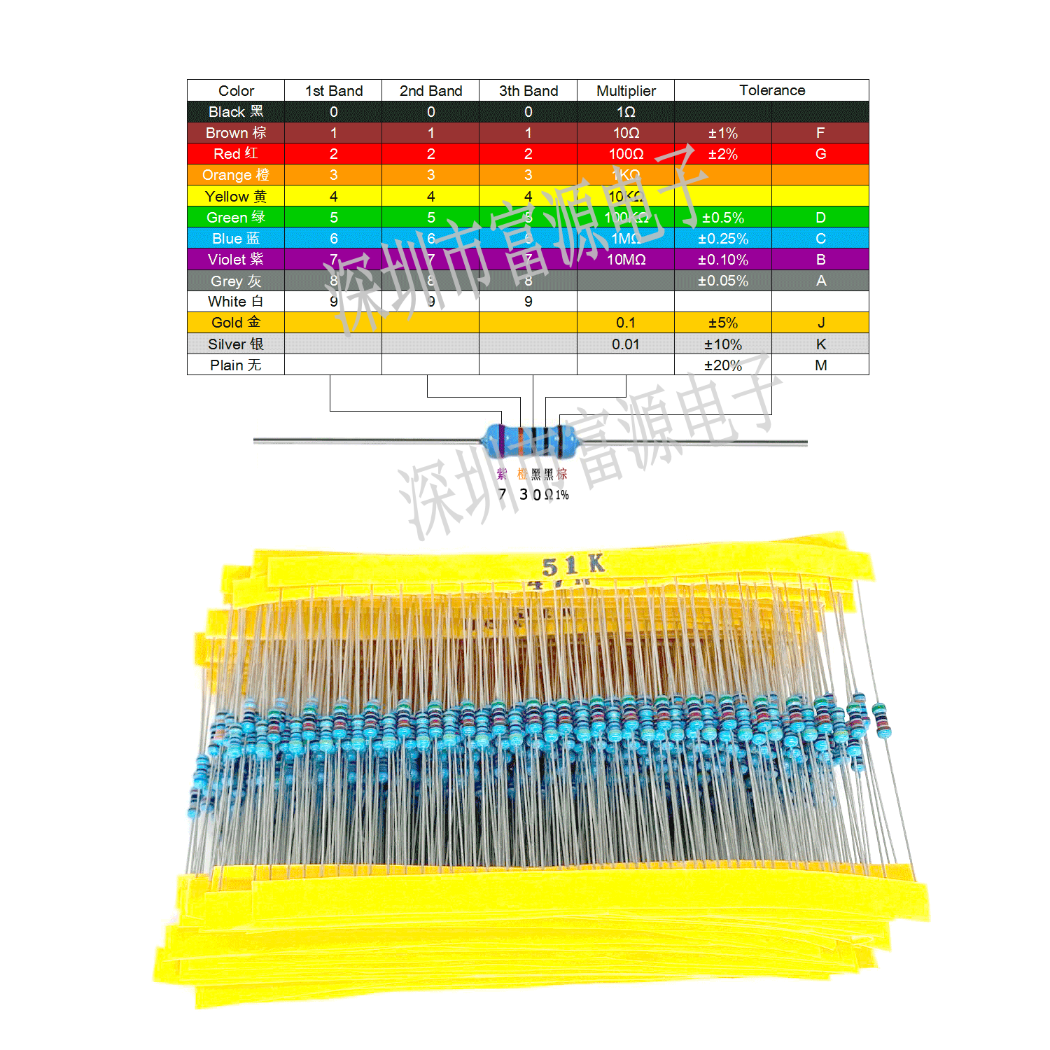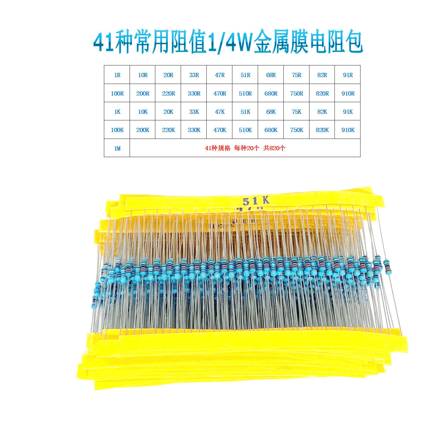 Common 41 types of resistance 1 4W blue five-circle accuracy 1% metal film resistance sample pack of 20 total of 820