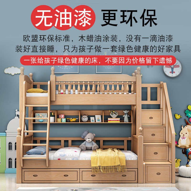 All solid wood children up and down bed high and low bunk bed mother and child bed adult beech wood up and down bunk wood bed sub-mother bed combination