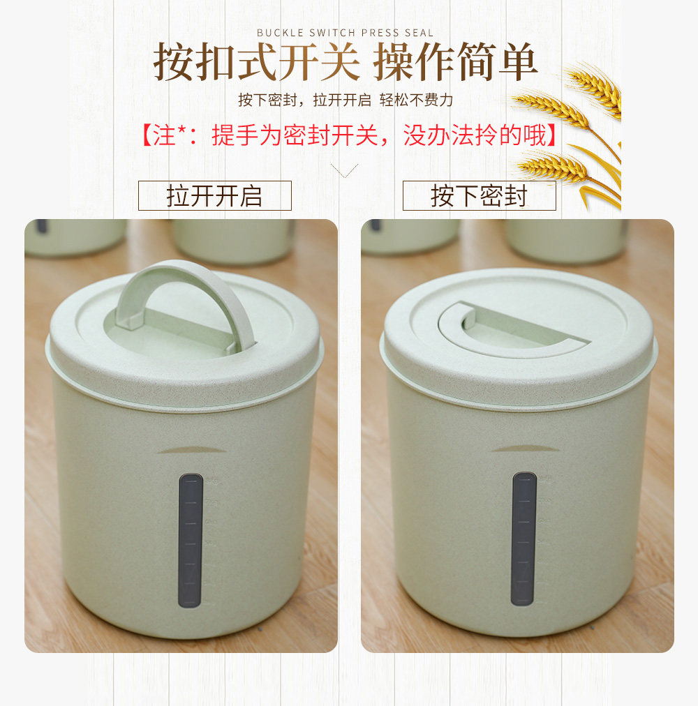 Grain storage barrel 5.6L (about 6 kg of grain) thickened sealing ring Insect-proof moisture Storage barrel 11.2L (about 12 kg of grain) Thickened sealing ring Insect-proof moisture storage barrel 5.6L (about 6 kg of grain) + snack can * 2 Grain storage barrel 11.2L (about 12 kg of grain) + snack can * 2 Storage of grain barrel 6L (about 7 kg of grain) Bottom with roller Grain storage barrel 9L (about 10 kg of grain) Bottom with roller Grain storage barrel 15L (about 16 kg of grain) Upgrade Tiffany blue Grain storage barrel 15L (about 16 kg of grain) Upgrade white oak