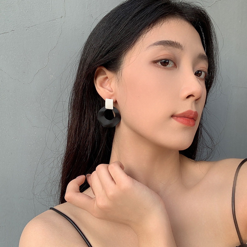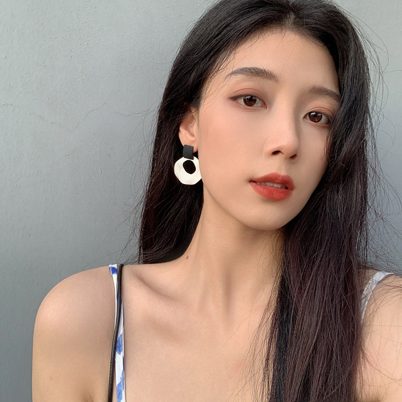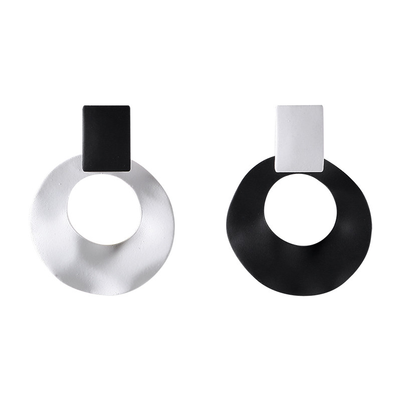 Black and white geometric circle earrings 2020 new wave hyperbole high-grade personality Europe and America 100 hitch clips without ear holes
