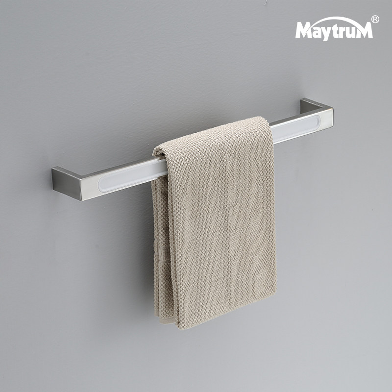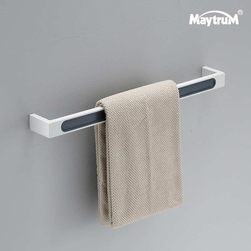 Powder room towel rack single bar 304 stainless steel wall-mounted bathroom rack Nordic white storage towel rack