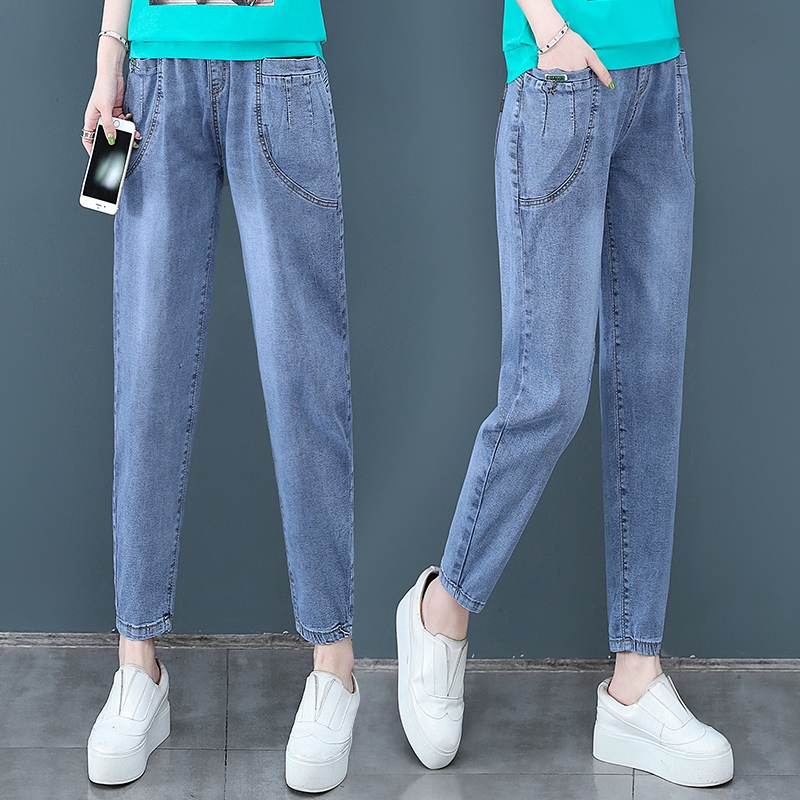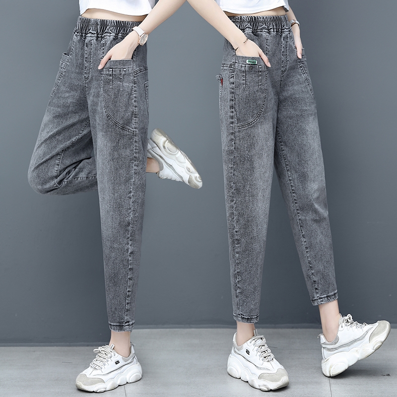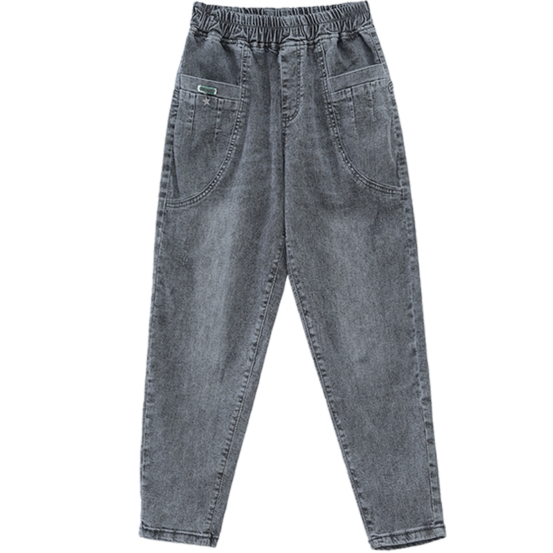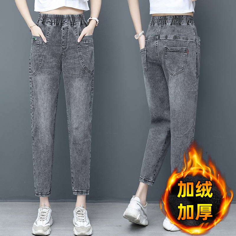 Smoke Gray high waist plus velvet thick dad jeans women 2021 New loose spring and autumn Harlan ankle-length pants