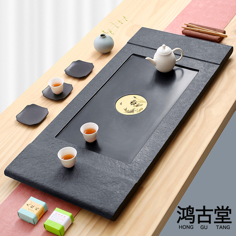 The whole piece of black gold stone tea tray home simple living room stone tea table Chinese style tea sea stone tea set Kung Fu tea tray