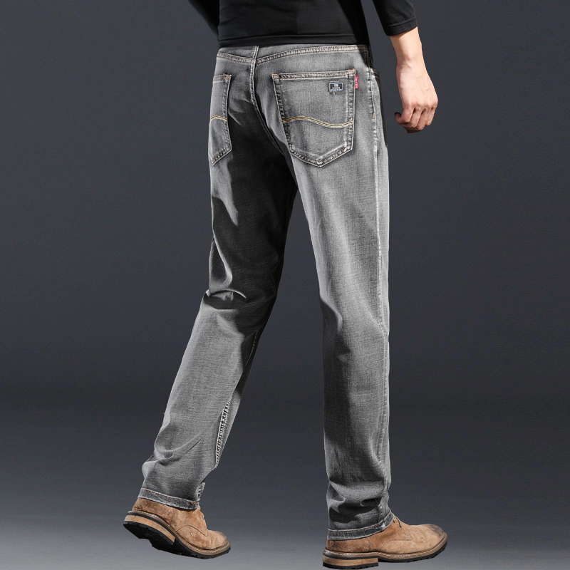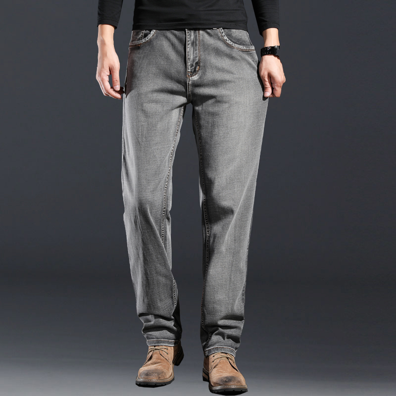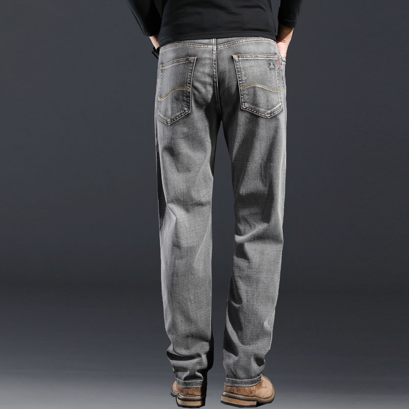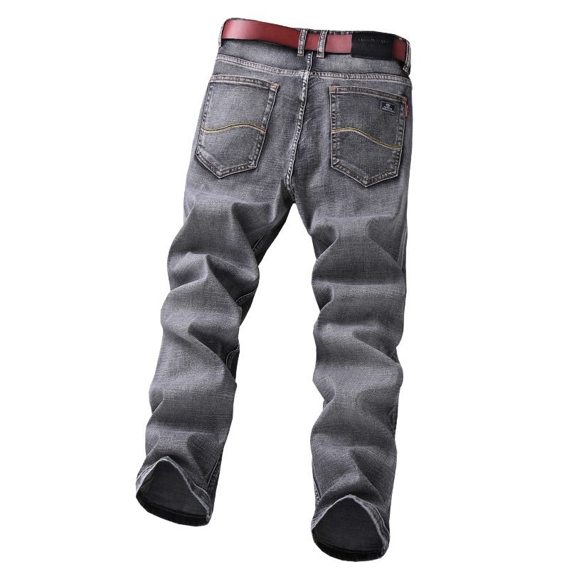 Autumn smoke gray jeans men's loose straight men's pants middle-aged large size senior gray casual spring and autumn trousers