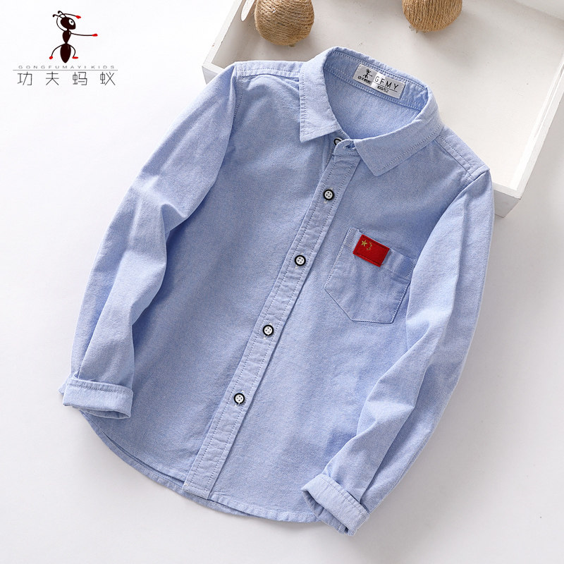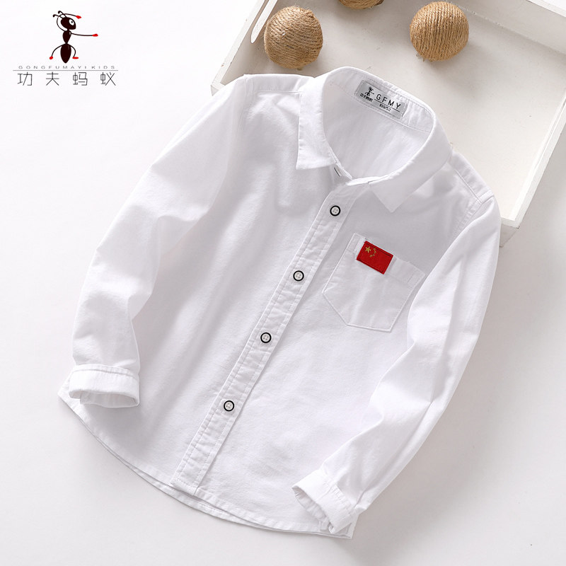 Boy white shirt pure cotton spring and autumn elementary school students choir six-one shirt performing school uniform children long sleeve shirt