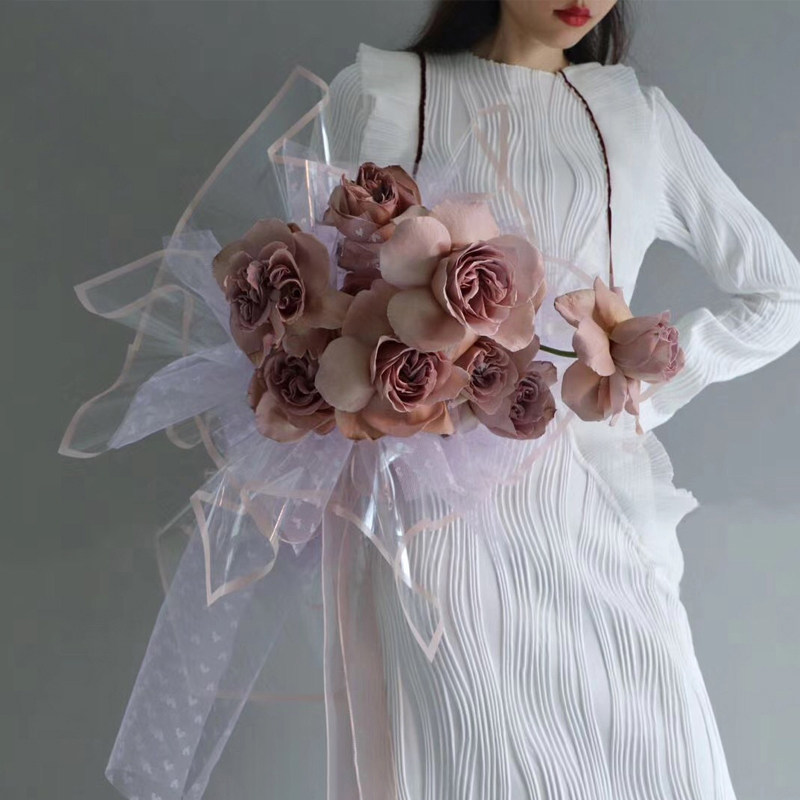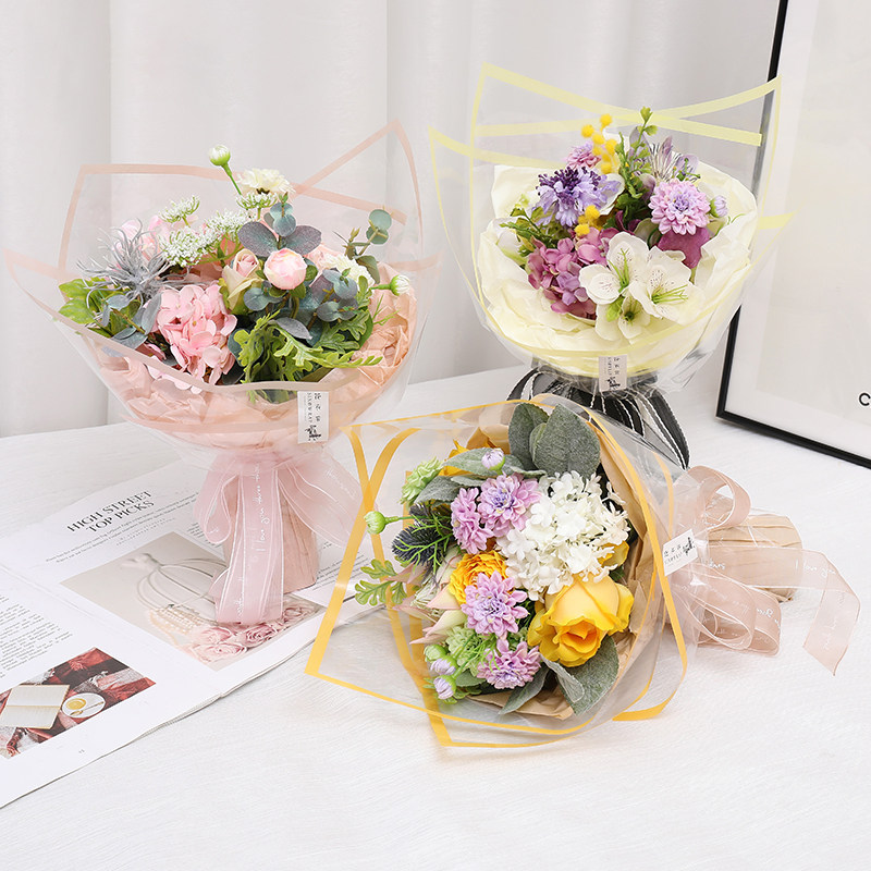 Full Edge Flowers Packaging Materials New Thickening Edging Transparent Waterproof Glass Paper Flower Shop Floral Wrapping Paper 20 sheets