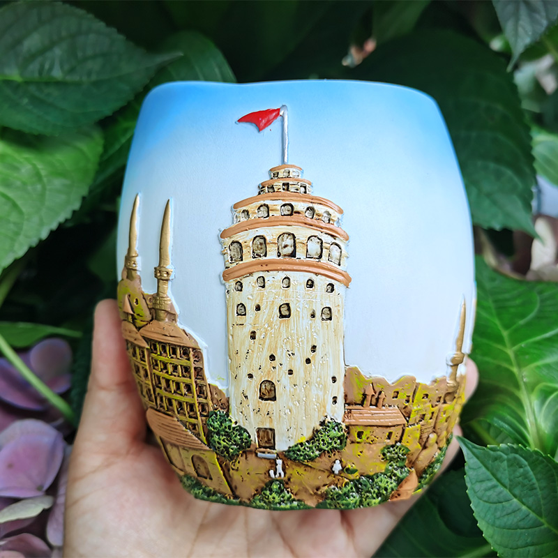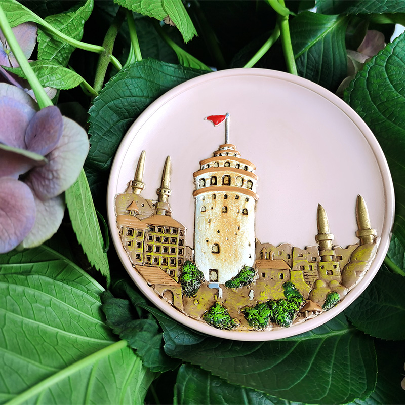 The castle is multi-coloured and the