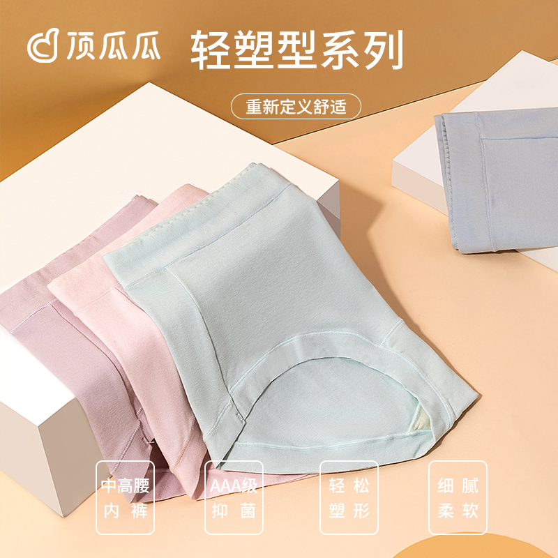 Dingguagua women's medium and high waist briefs antibacterial plain color high elastic large size shorts solid color 4 pieces
