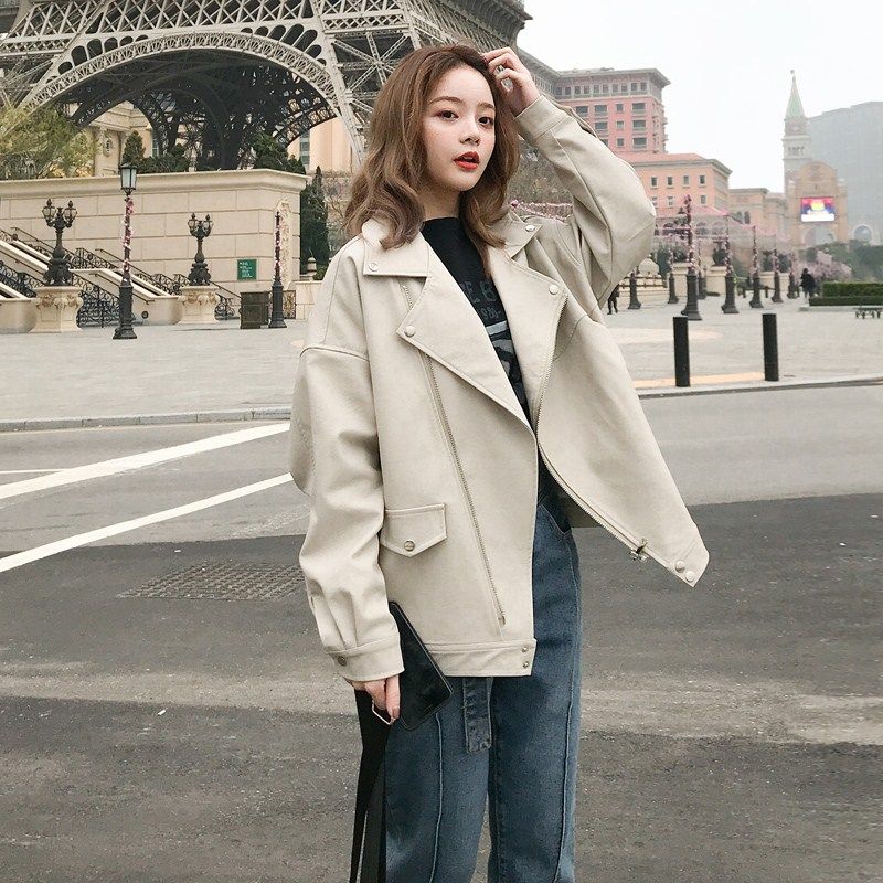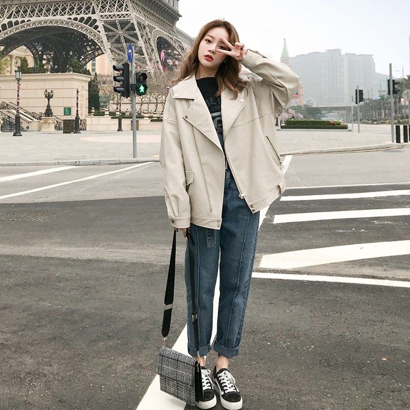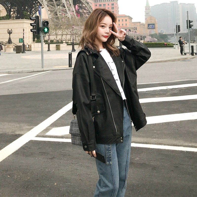 Motorcycle leather jacket women 2021 new small man autumn winter popular super fire premium sense fried street leather jacket cool