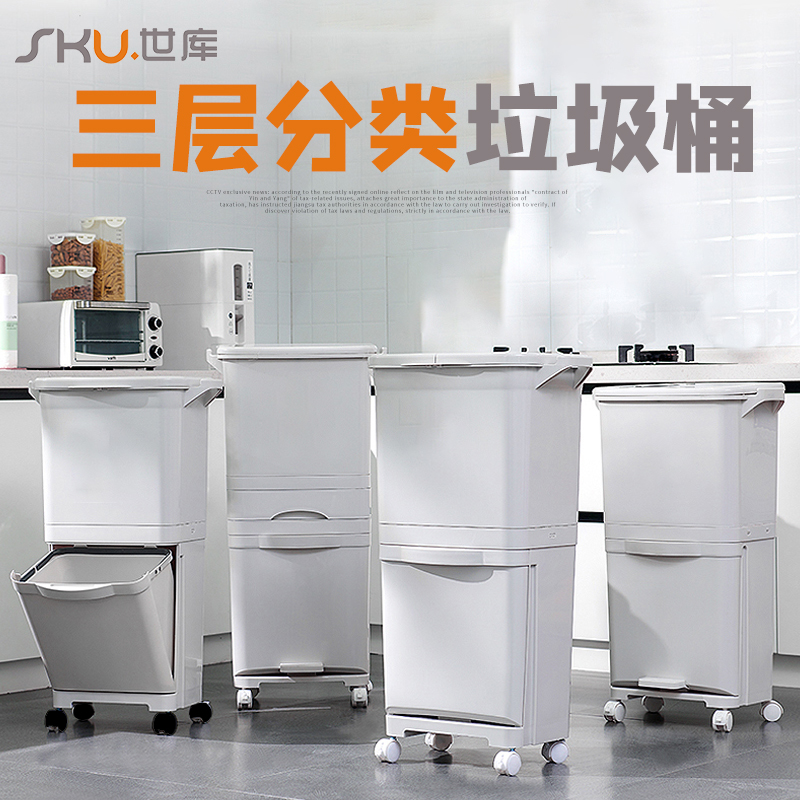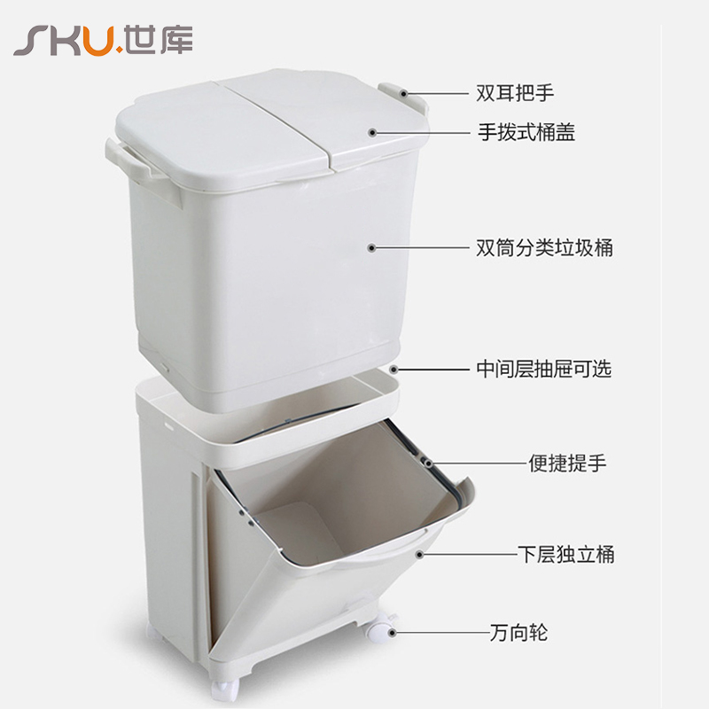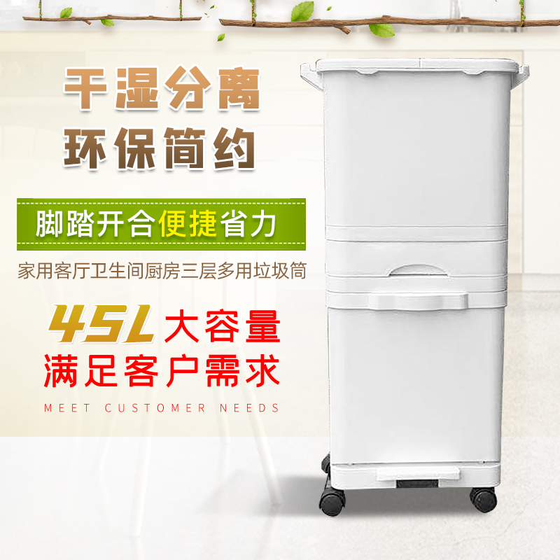 Day-type three-tier classification garbage can 45L dry wet (large) dry and wet sorting bin 22L (small)