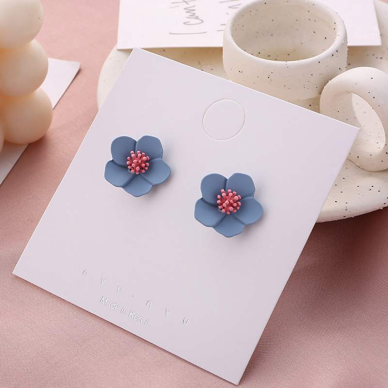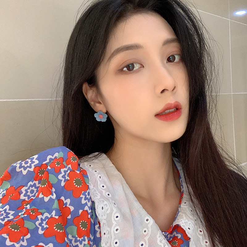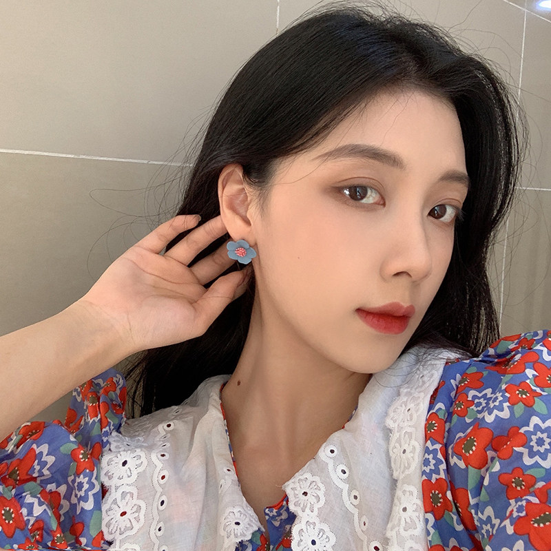 Blue Flowers Earrings 2020 New Tide Air Quality Ear Pin Super Fairy sweet and cute with ear clips without earbuds