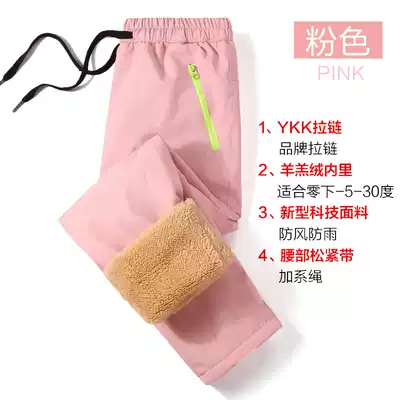 Autumn and winter lamb cashmere outdoor children's assault pants boys and girls windproof waterproof plus velvet thickened ski cold and warm