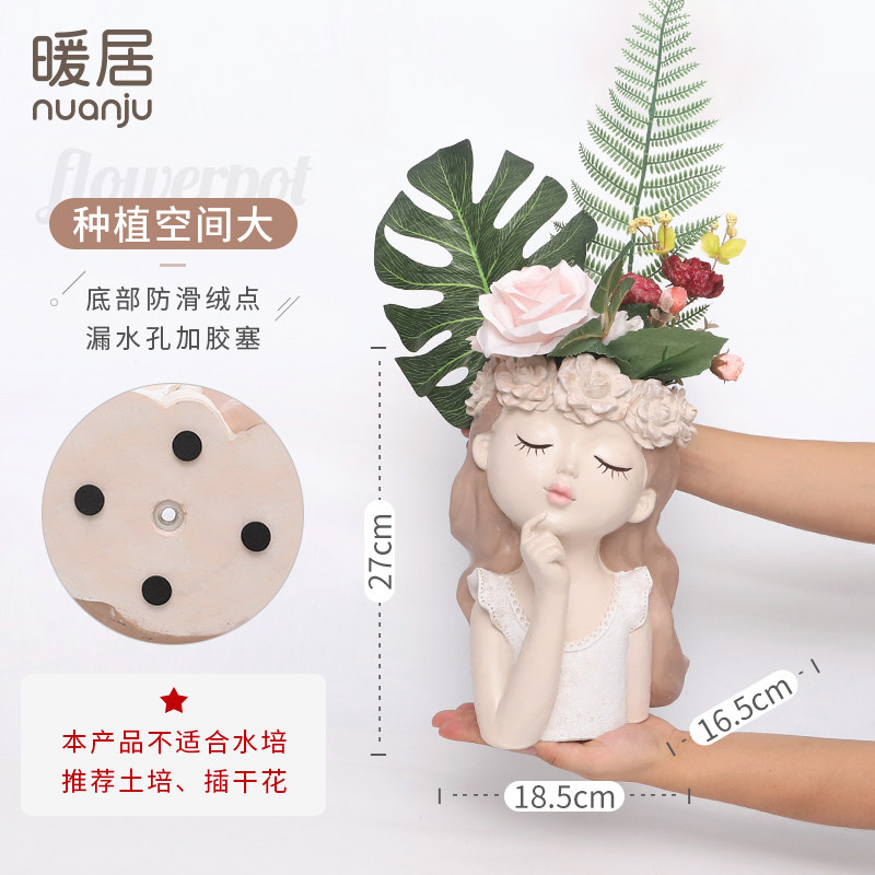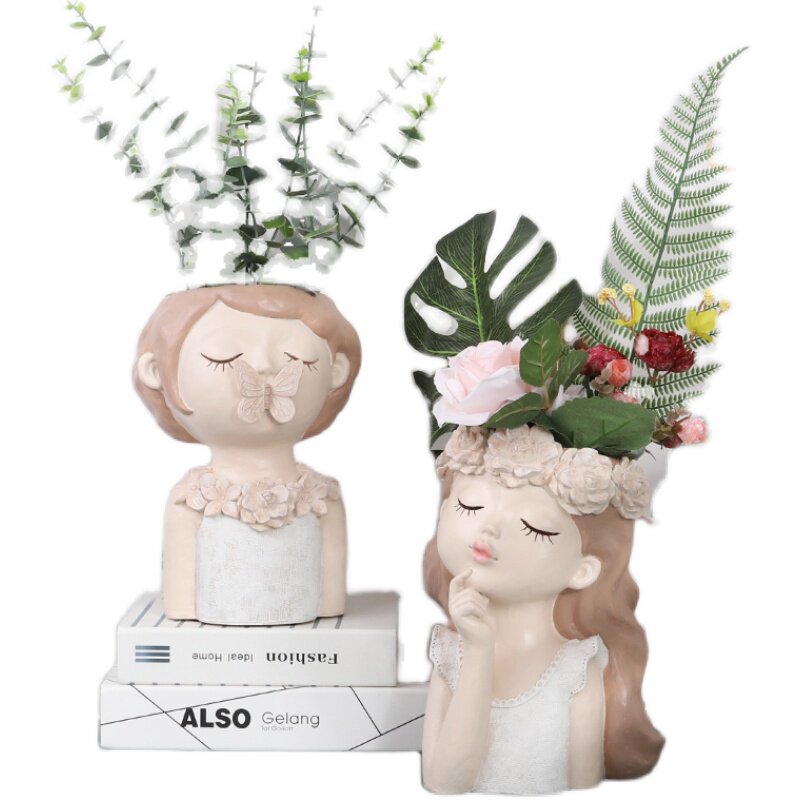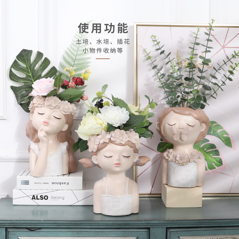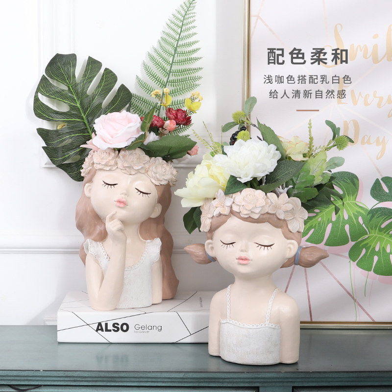 Creative Nordic Wind Large Caliber Multimeat Cartoon Girl Flower Pot Personality Cute Living Room Tabletop Dry Flower Decoration Pendulum