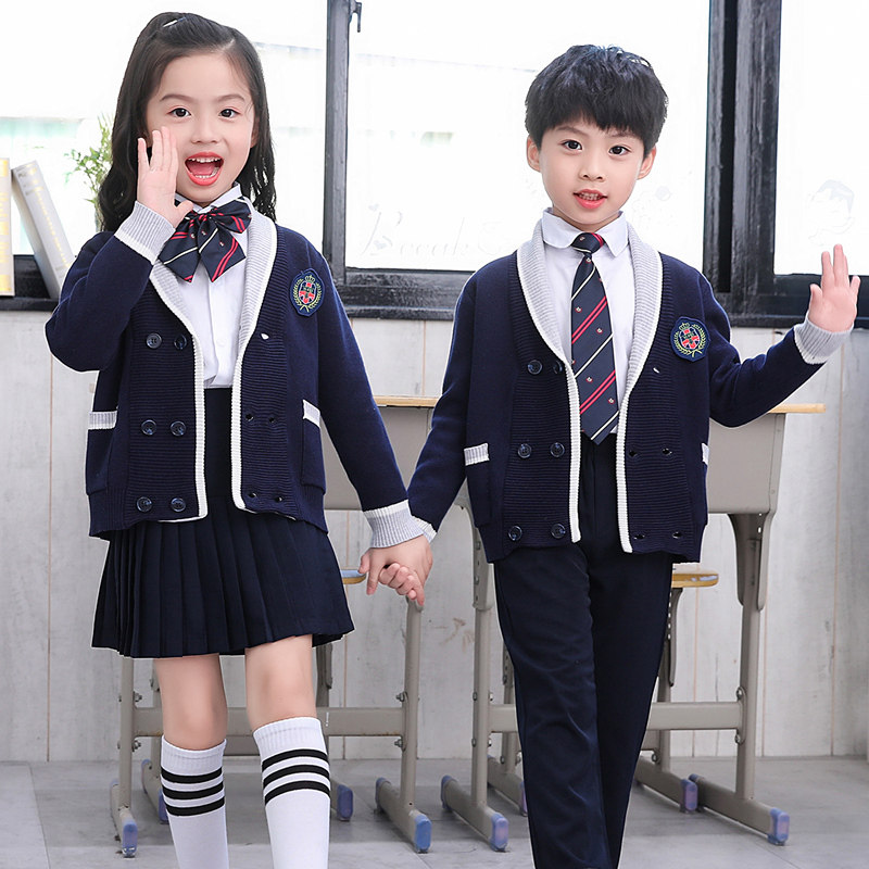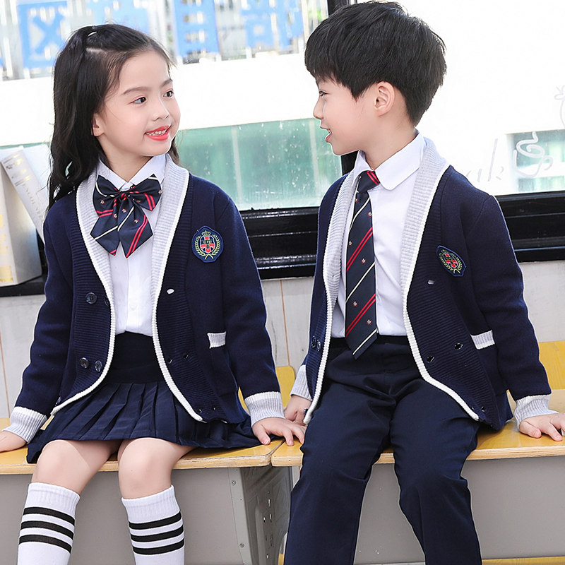 Kindergarten dress Spring and autumn winter clothes British college style children's sweater set primary school uniform first grade class uniform