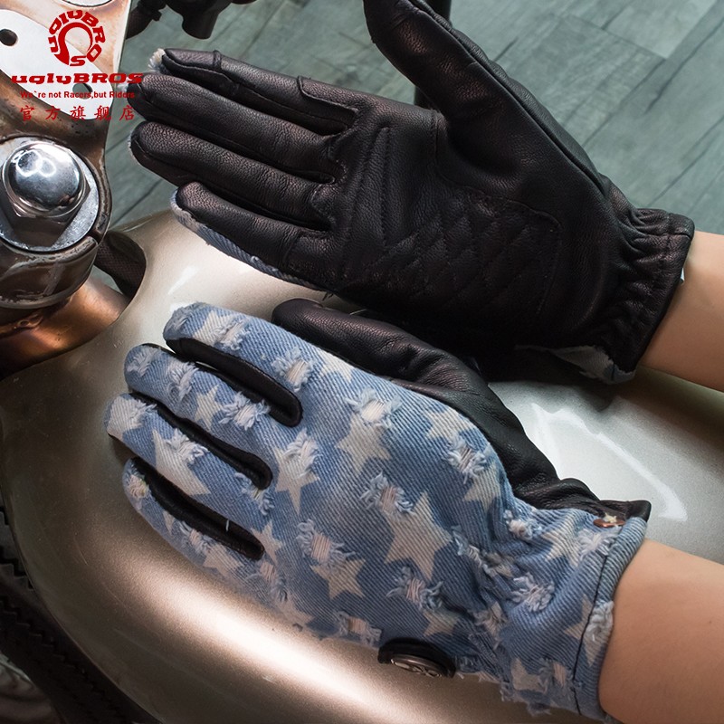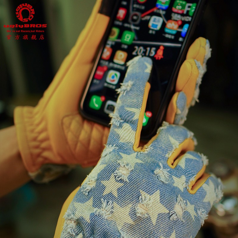 uglybros motorcycle bike riding gloves leather touch screen Harley Knight retro anti-fall denim