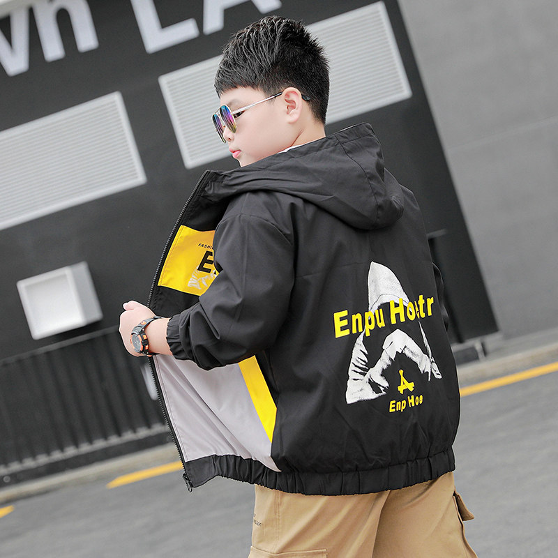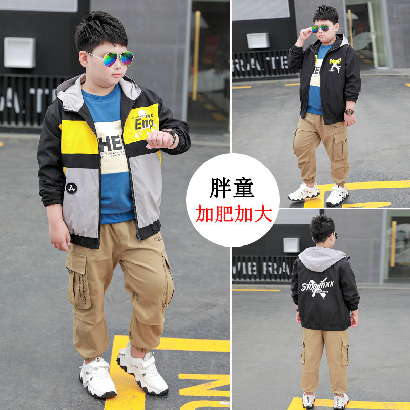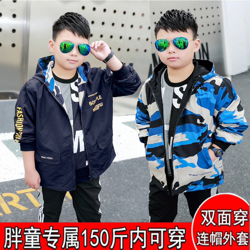 Big boy jacket spring and autumn windbreaker middle child double-sided wear fat children's clothing boy plus fat increase jacket casual top