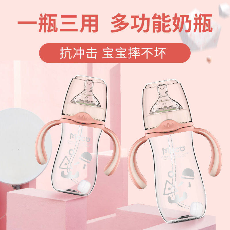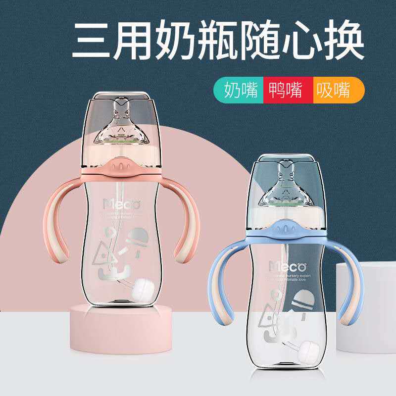Baby wide mouth anti-fall high temperature anti-inflation gas newborn baby bottle duck mouth cup plastic straw