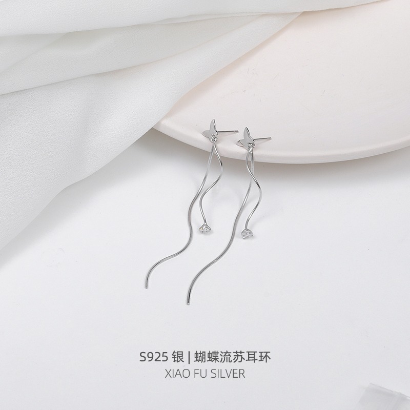 Butterfly Tassel Flash Diamond Earrings ~ Whole Body S925 Silver
