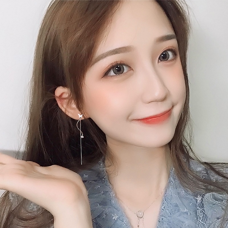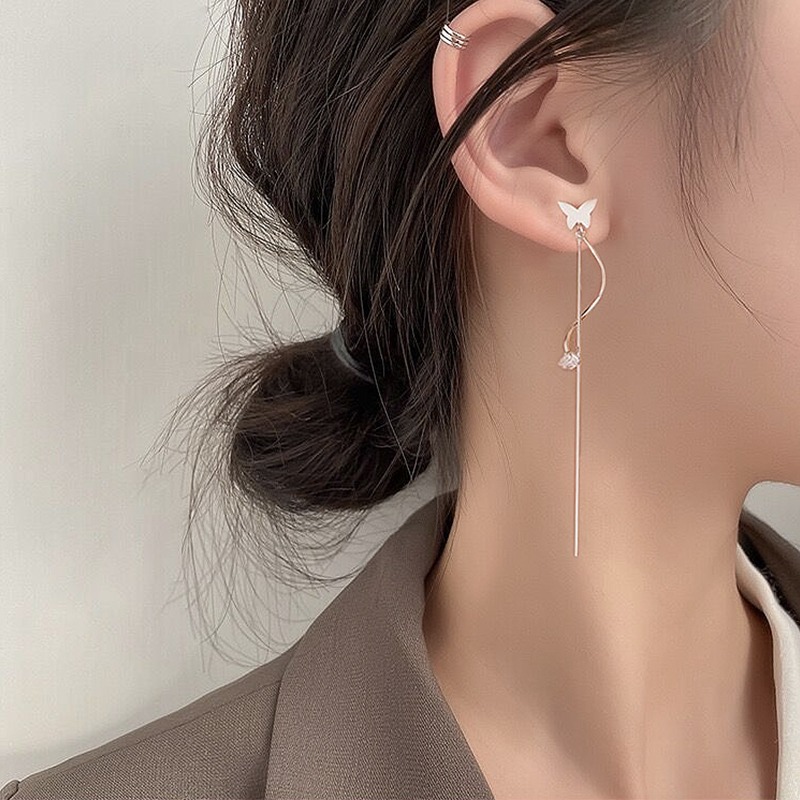 2022 new trendy butterfly earrings tassel fashion temperament net celebrity personality earrings 925 sterling silver ear needles simple