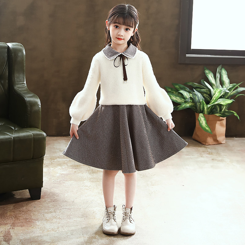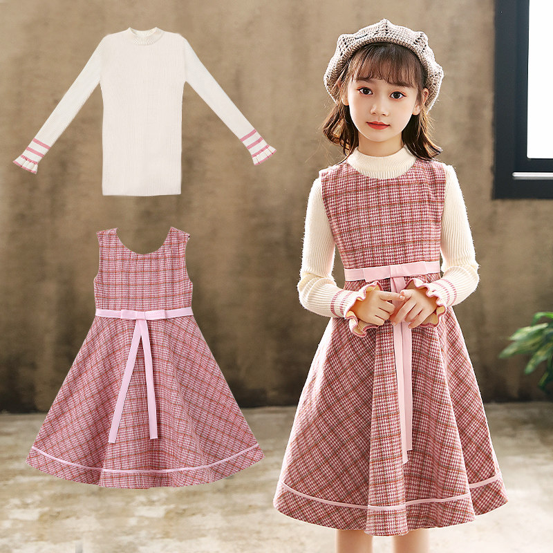 Girls dress 2020 new skirt Western princess dress autumn and winter sweater dress children's winter wool vest winter
