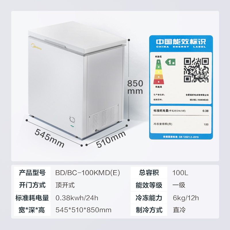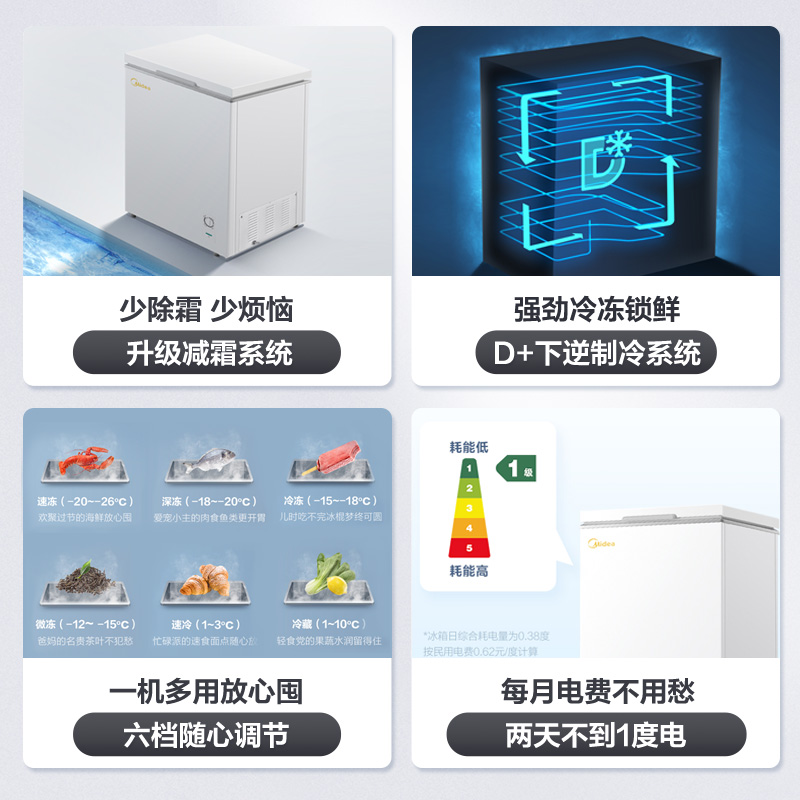 Midea's 100L Xiaoice cabinet household freezer energy saving commercial small refrigerated freezer dual-purpose mini refrigerator