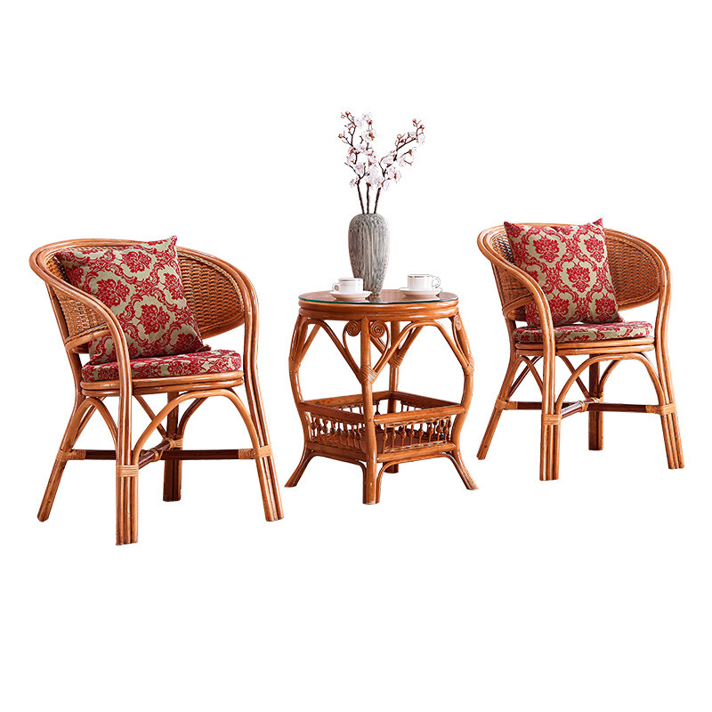 Natural rattan chair three-piece set balcony table and chair Teng braided backrest old man leisure small chair tea table combination special offer