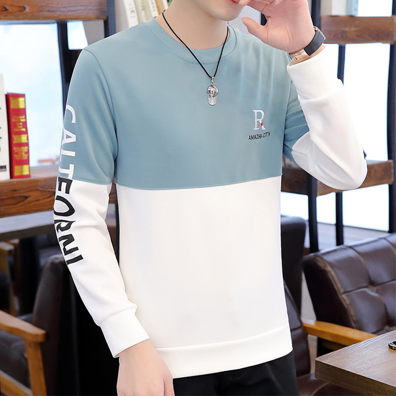 Tide brand ins sweater men's 2022 new casual color matching long-sleeved T-shirt bottoming shirt men's autumn and winter round neck top clothes