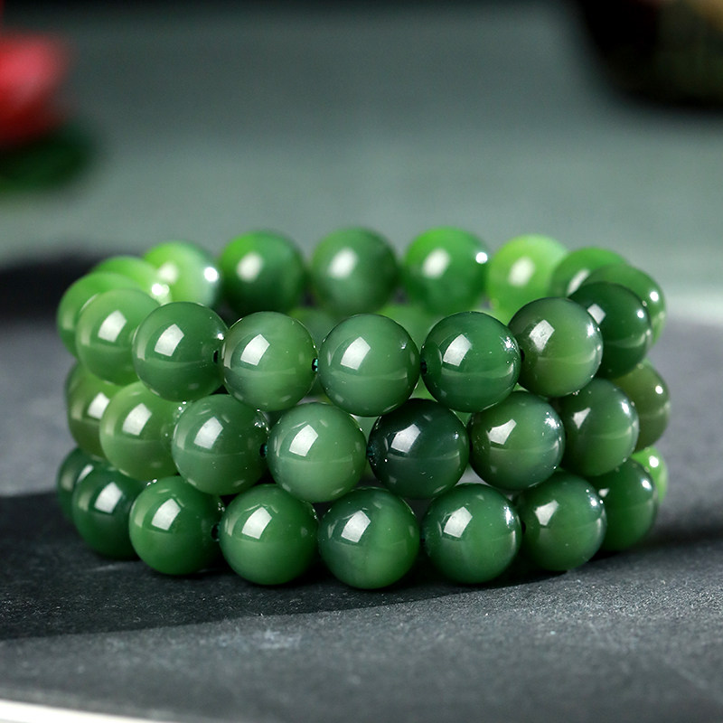 Hetian jade Jasper bracelet Jade thin round spinach green jade jewelry Men's and women's treasures live special shot 4