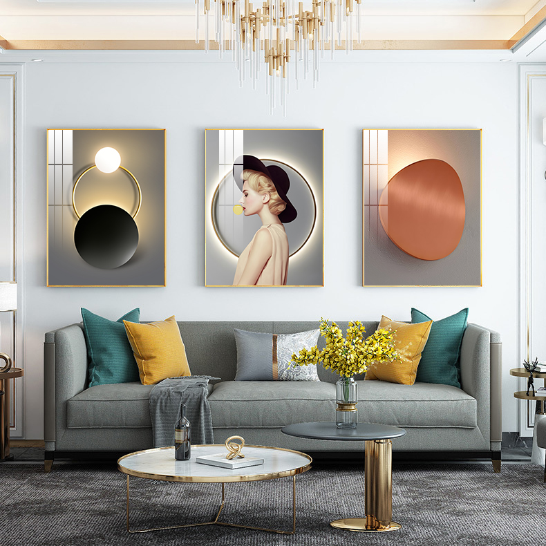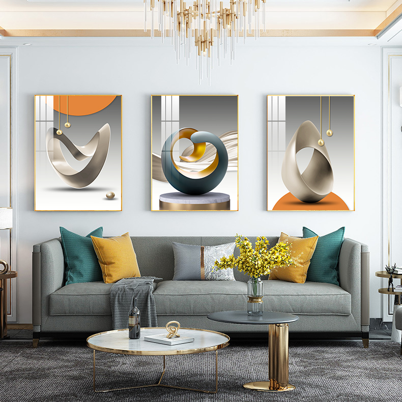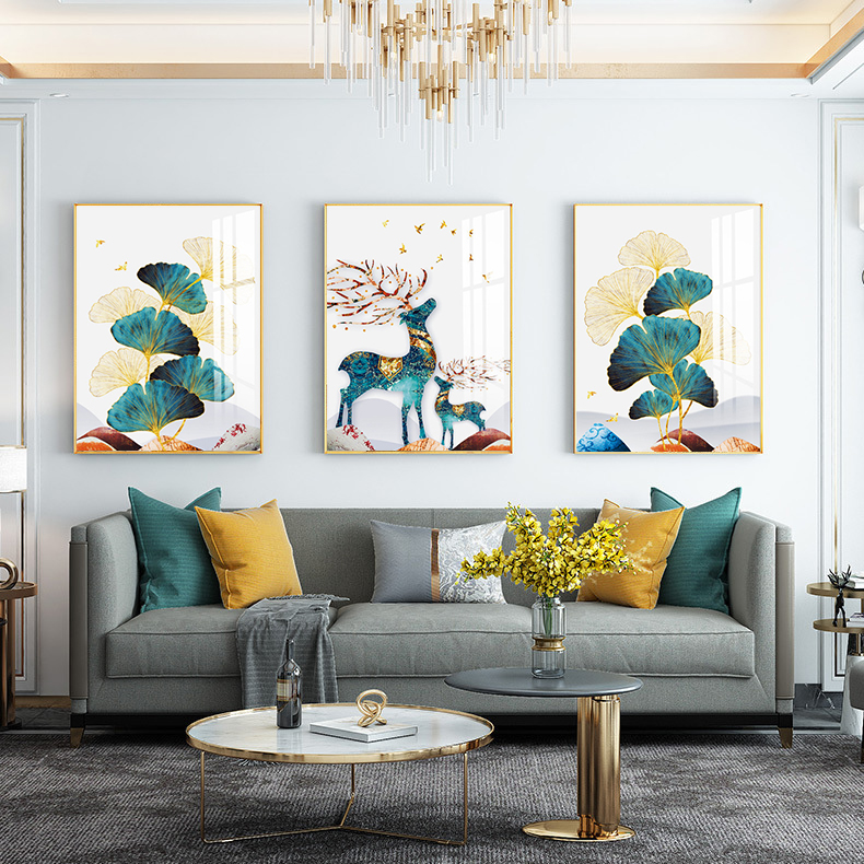 Living room decoration painting modern minimalist sofa background wall hanging painting atmosphere light luxury wall painting Nordic crystal porcelain triptych