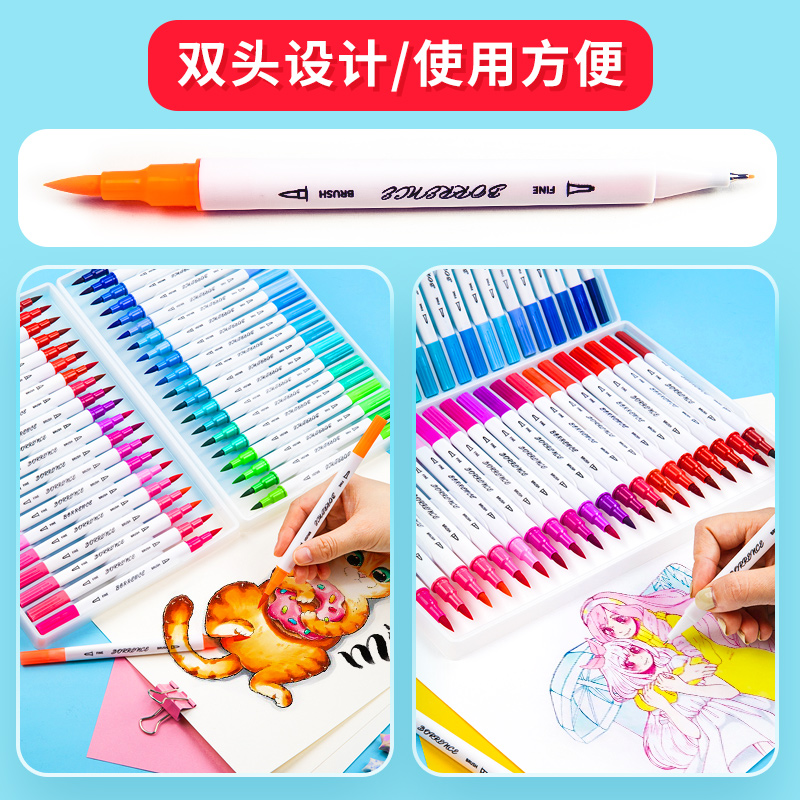 Berens 100-color soft-head watercolor pen double-headed color pen Mike pen 72 color pen set children's kindergarten
